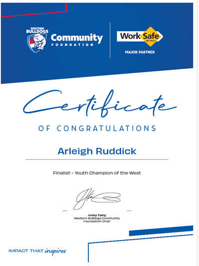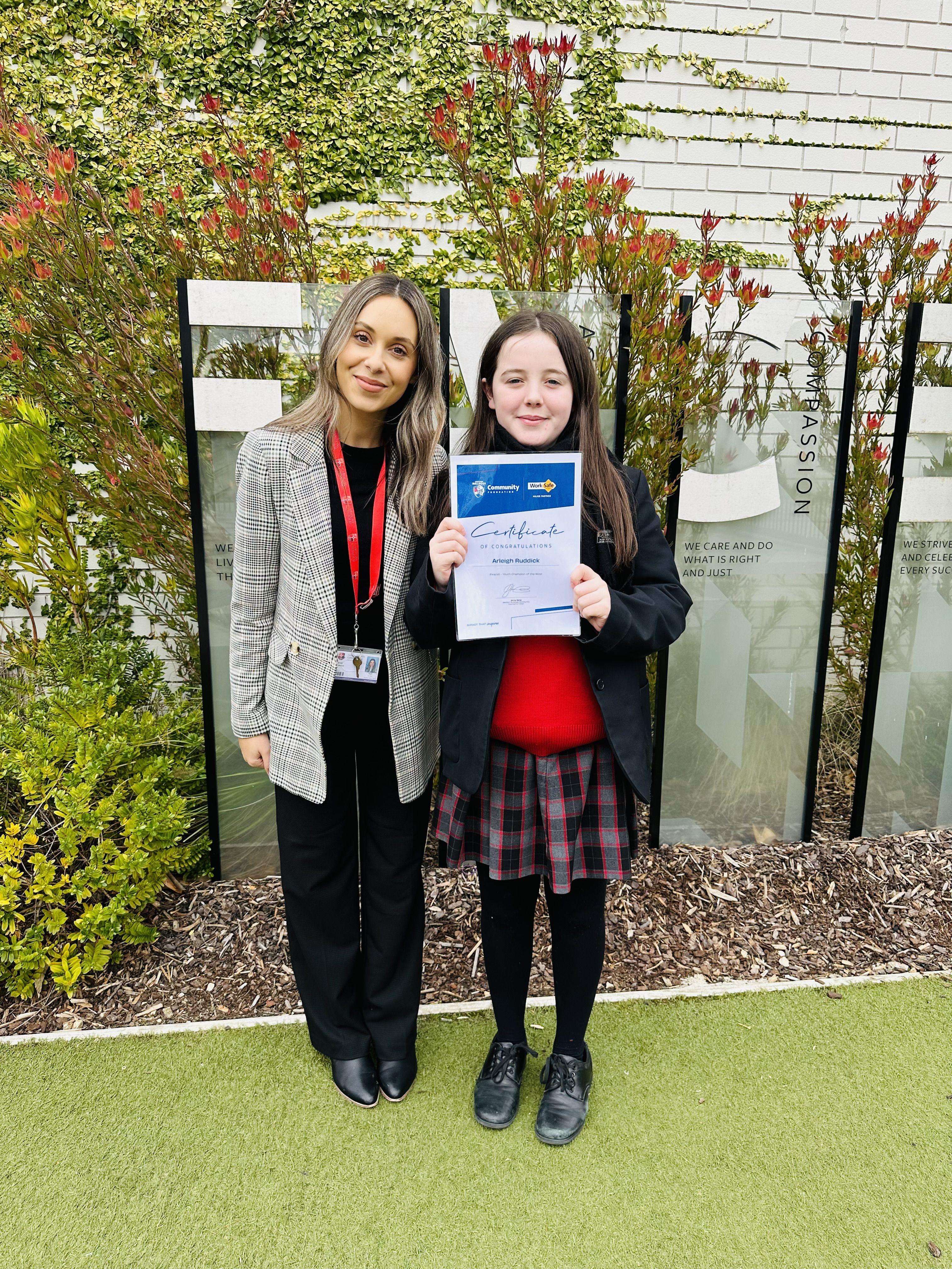 Arleigh Ruddick, one of our Year 9 Campus Captains, was a finalist for the Youth Champion of the West Award where she came second. Congratulations Arleigh!